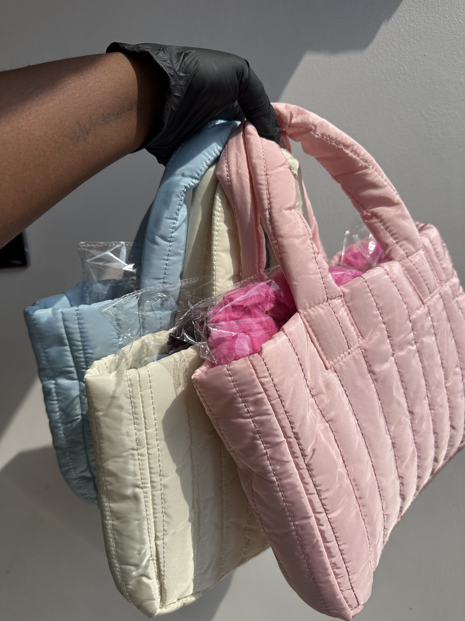 Pink, Blue, White, Brown, Black